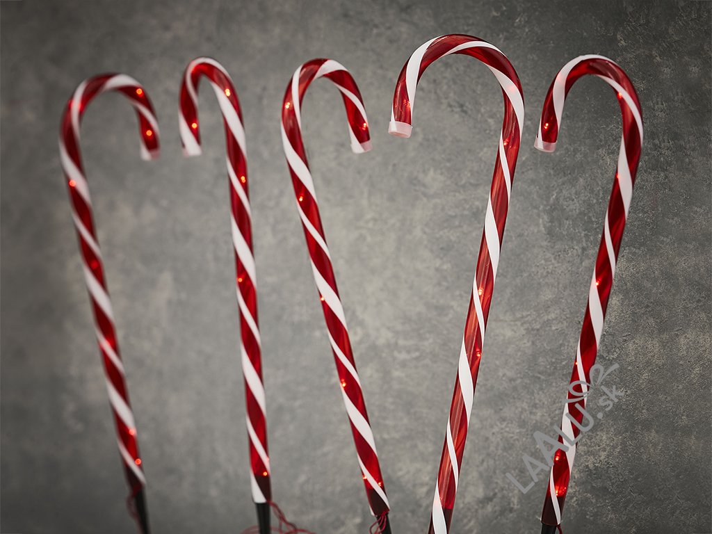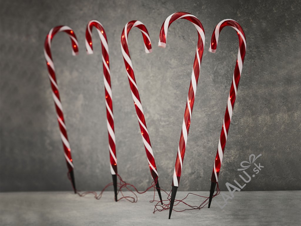 Sada 5 ks dekorácií: LED svetelná cukrová palica 60 cm