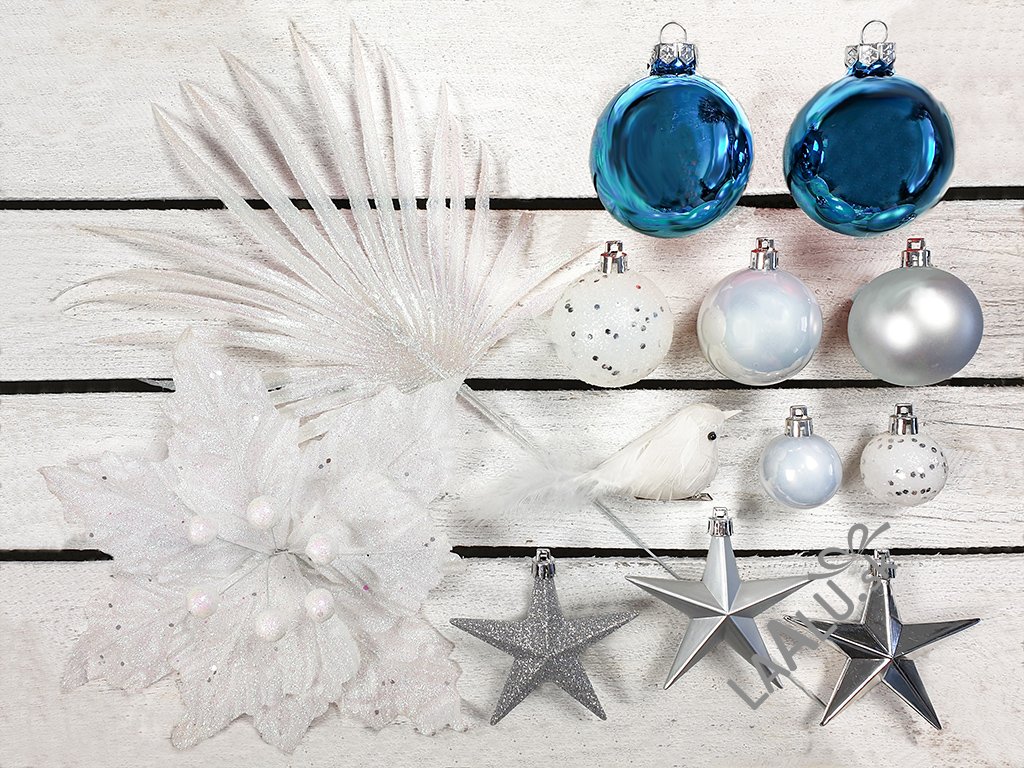 Farba vianočných ozdôb: | biela, modrá, strieborná |