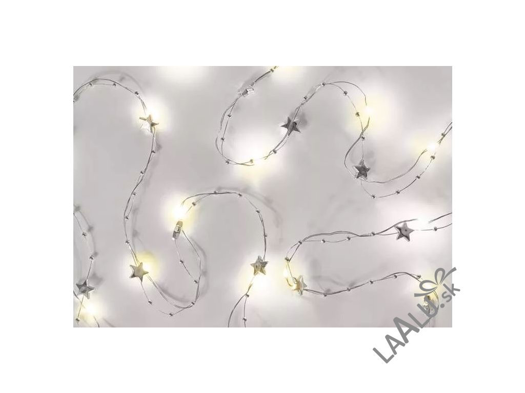 Vianočná svetelná reťaz s HVIEZDIČKAMI 1,9 m STUDENÁ BIELA