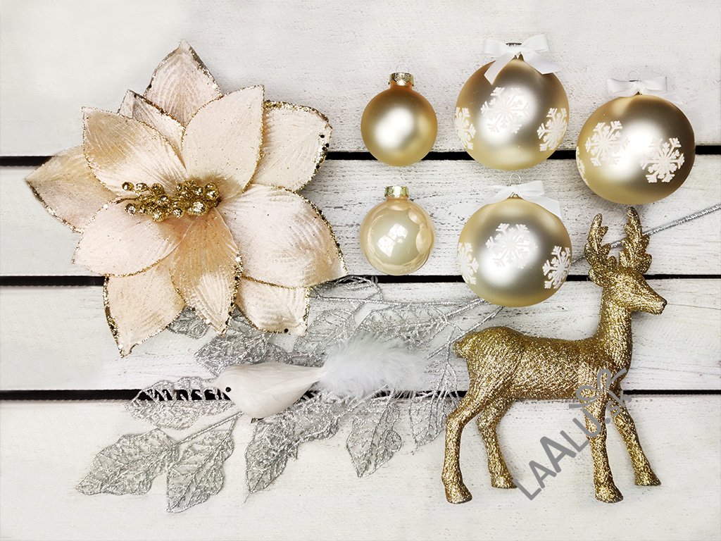 Táto sada je zložená z veľkého množstva jemných ozdôb, dekorácií, a to v champagne tónoch.