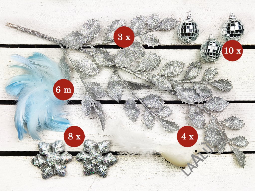 | Farba vianočných ozdôb: | biela, modrá, strieborná |