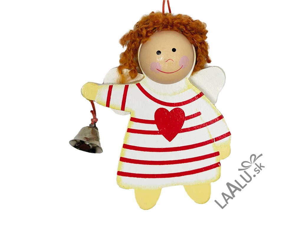 Anjelici so srdiečkom a zvončekom s rozmermi 12 x 10 cm sú vyrobené z dreva.