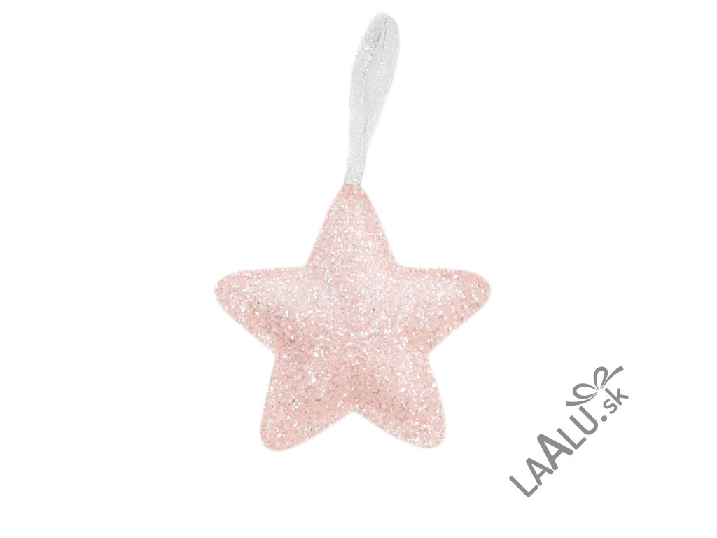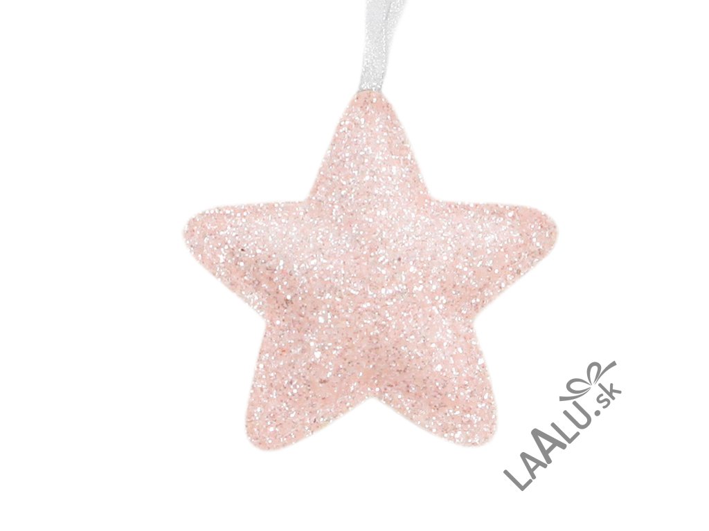 Sada 3 ks dekorácií: Hviezda z koženky s glitrami ružová 14,5 cm