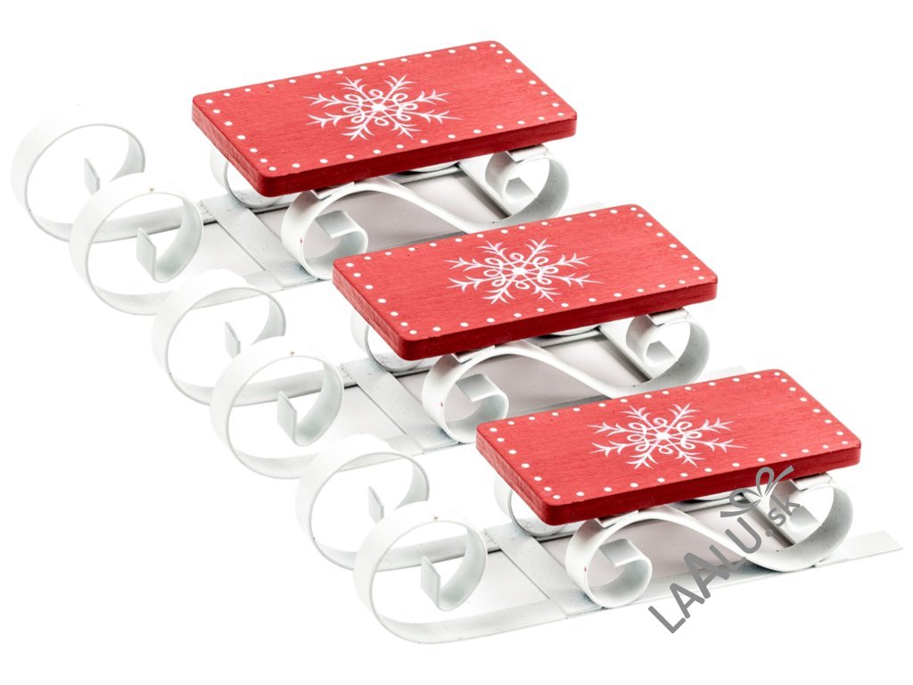 Sada 3 ks ozdôb: Sánky červeno-biele 12,5 x 4,5 cm