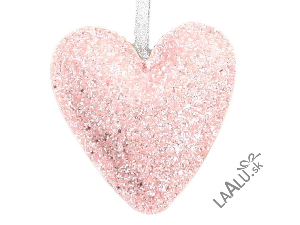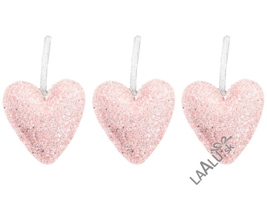 Sada 3 ks ozdôb: Srdce z koženky s trblietkami ružové 12,5 cm