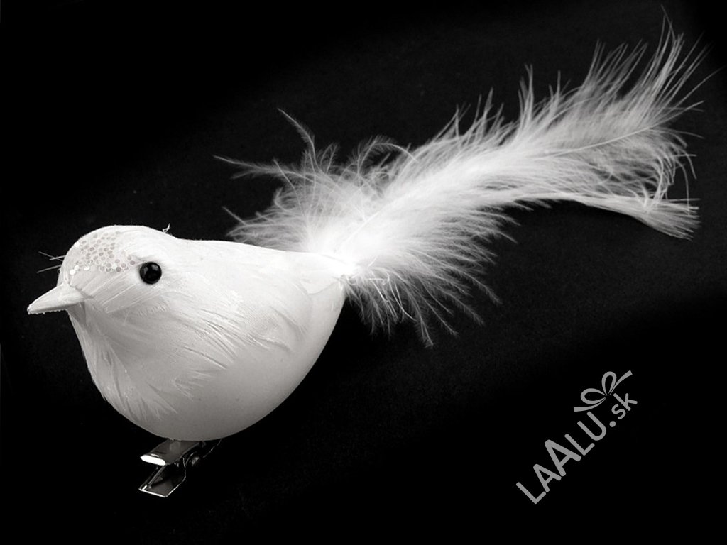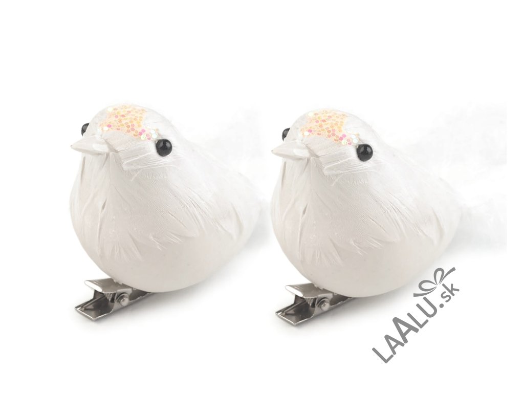 Biele vtáčiky na striebornom klipe pre ľahké uchytenie.