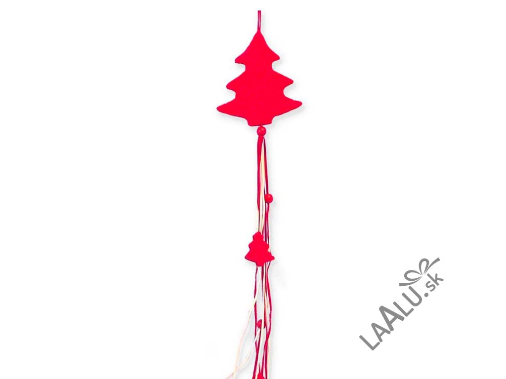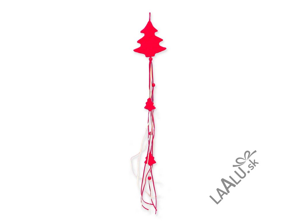 Netradičné textilné girlandy s vianočným motívom stromčeka v výraznej červenej farbe.