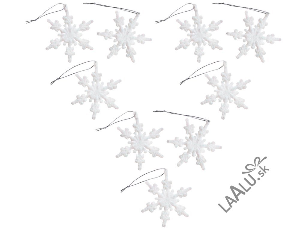 Sada 9 ks ozdob: Závěsné vločky plastové bílé 7 cm