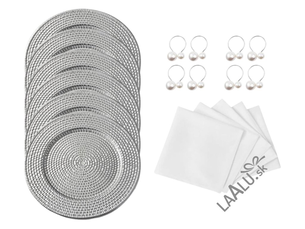 Nájdete v nej elegantné strieborné tácky, kvalitné textilné obrúsky a štýlové krúžky na obrúsky s perlou, ktoré dodajú prestieraniu nádych luxusu.
