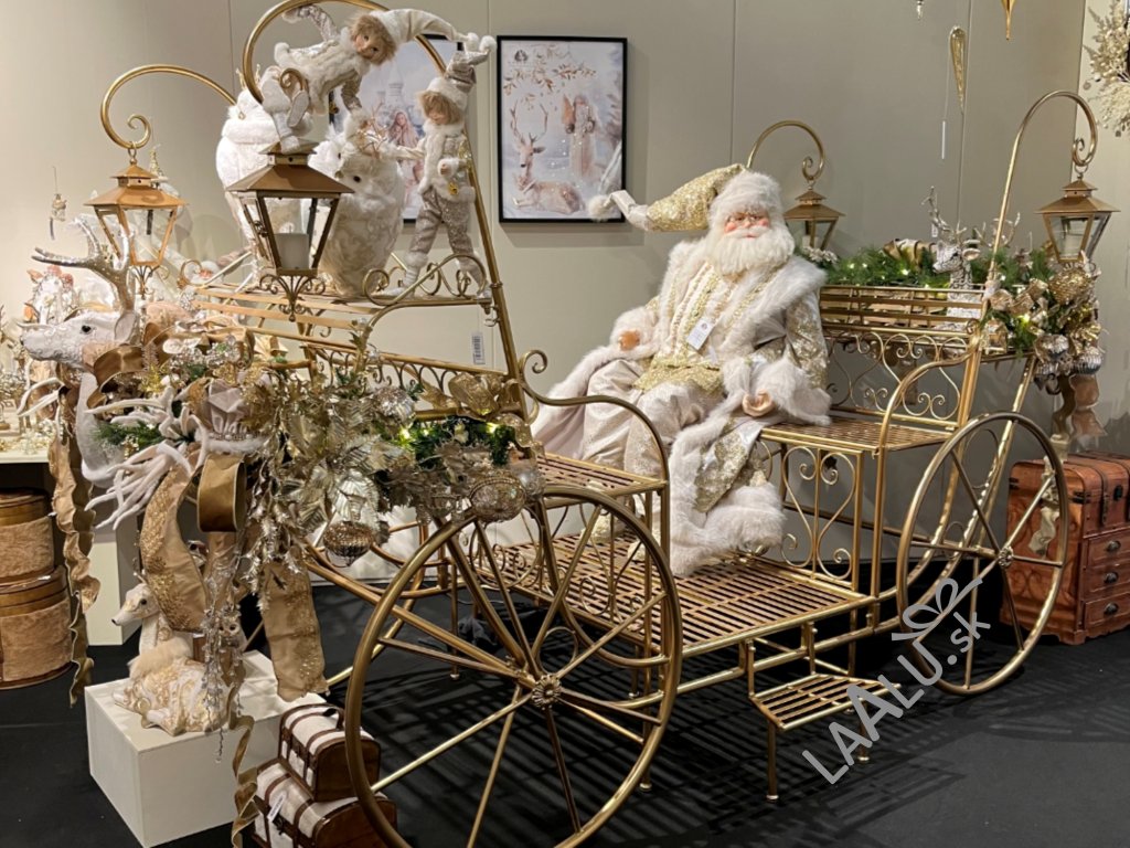 Impozantná luxusná vianočná sada Santa s kočiarom v životnej veľkosti s celkovou dĺžkou 290 cm a výškou 191 cm je skutočným klenotom pre tých, ktorí túžia po výnimočnej vianočnej výzdobe, ktorá ohromí každého návštevníka.