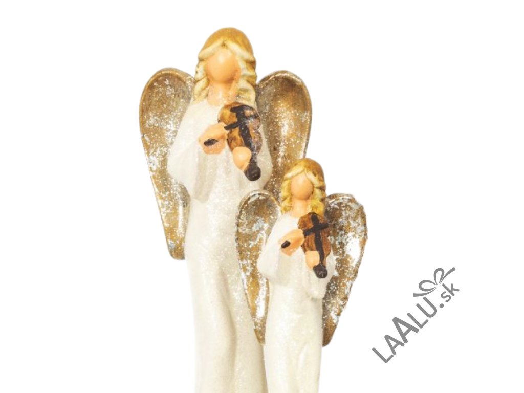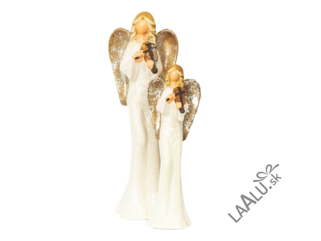 2 × anjelici s výškou 25 cm a 33 cm, farba champagne, materiál keramika