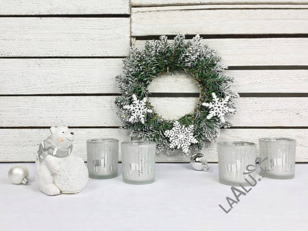 4 × svietnik na čajovú sviečku 7,3 × 8 cm, farba strieborná a biela, materiál sklo