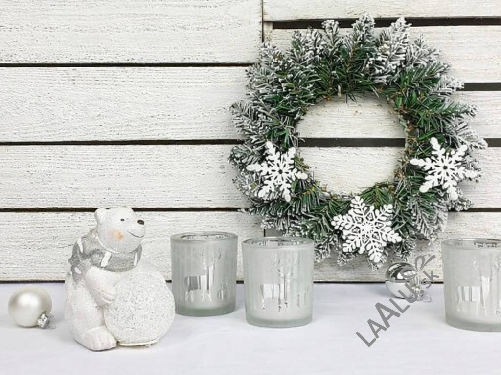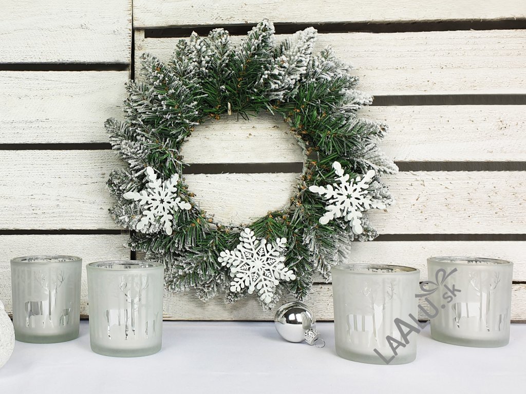 1 × ozdobený zasnežený veniec 30 cm – RUČNÁ VÝROBA