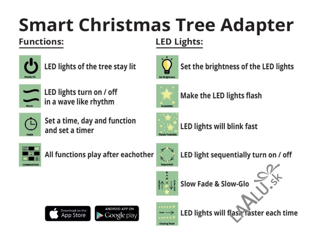 Tento umelý vianočný stromček obsahuje inteligentný adaptér, pomocou ktorého možno pomocou aplikácie ovládať LED osvetlenie.