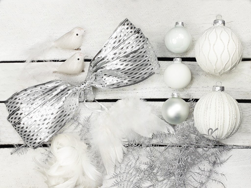 30 x ozdoba guľatá 6 cm, farba strieborná a biela, materiál sklo