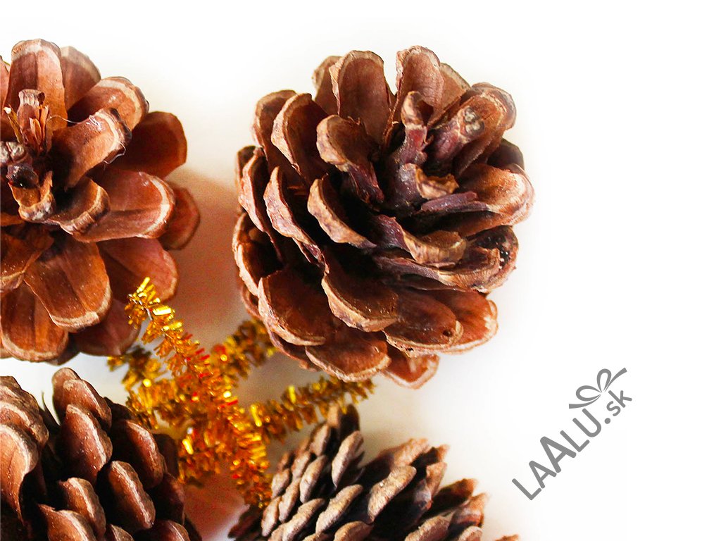 Šišky sú opatrené dekoratívnym zápichom pre jednoduché uchytenie v interiéri alebo zapichnutie do truhlíka.