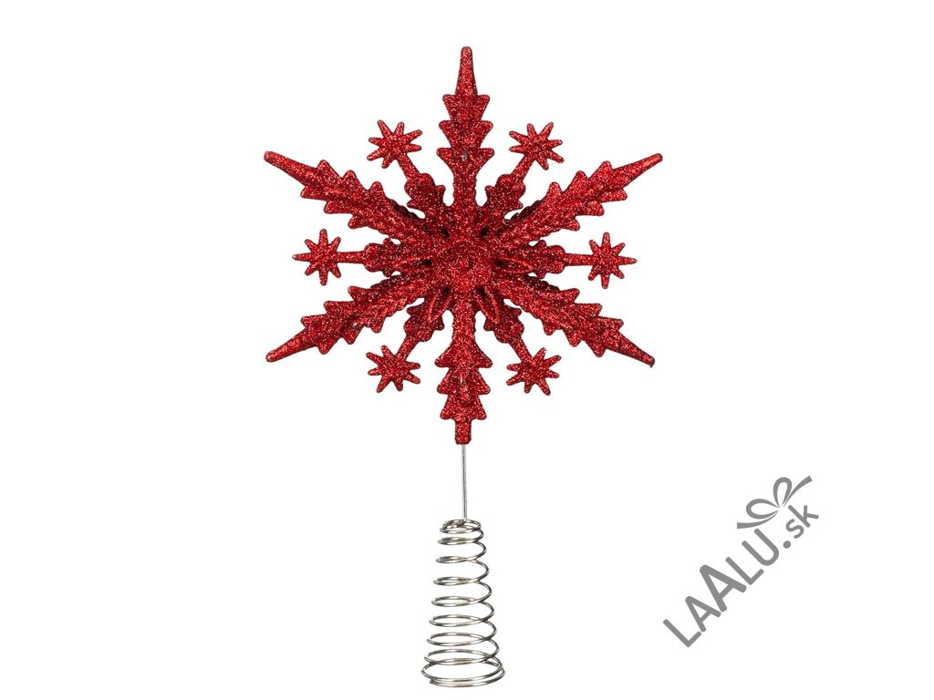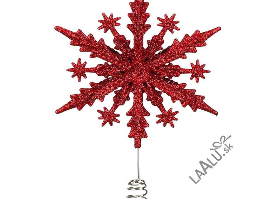 Špička na vianočný stromček vločka červená plast 23 cm