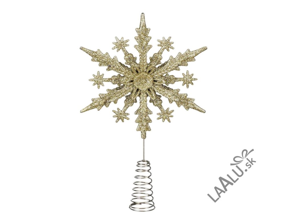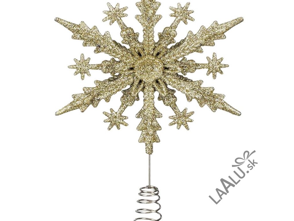 Špička je v tvare snehového vločky so zlatým glitrovým zdobením.
