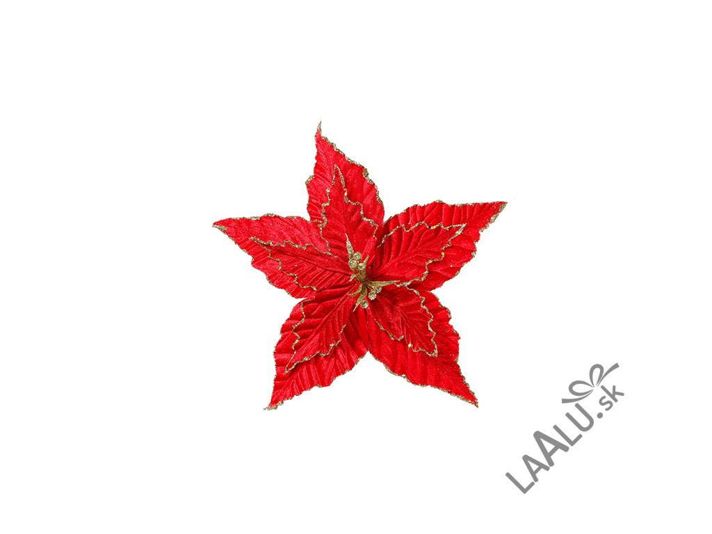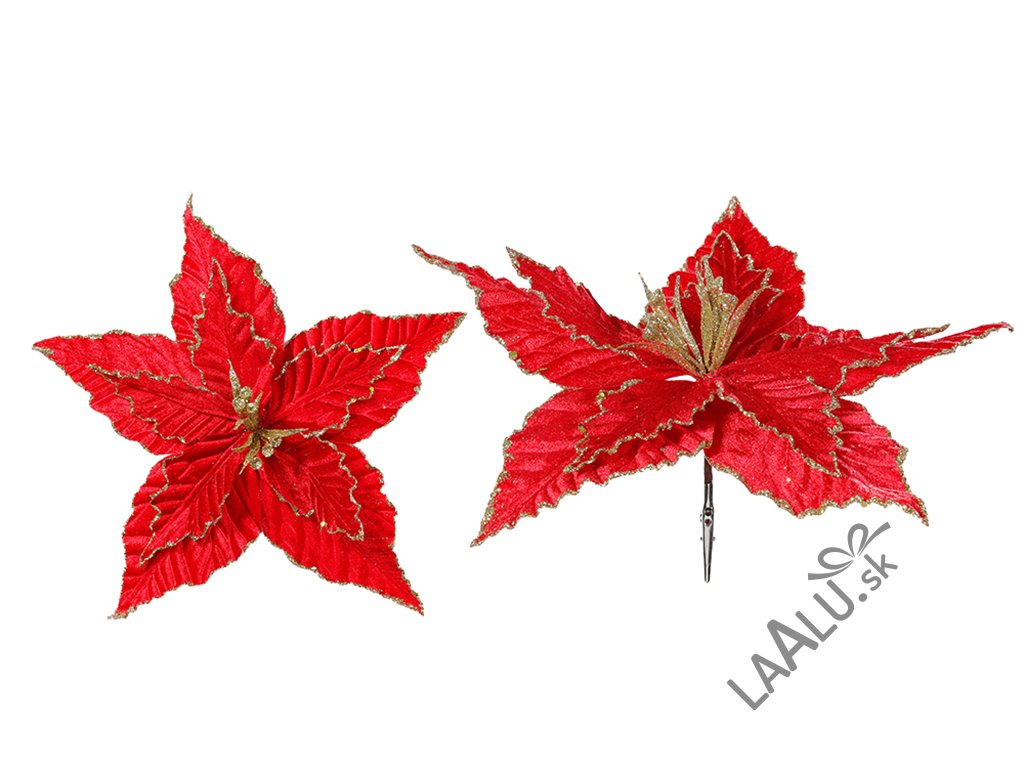 Sada 2 ks dekorácií: Kvetina s klipom červená a zlatým lemom 30 cm