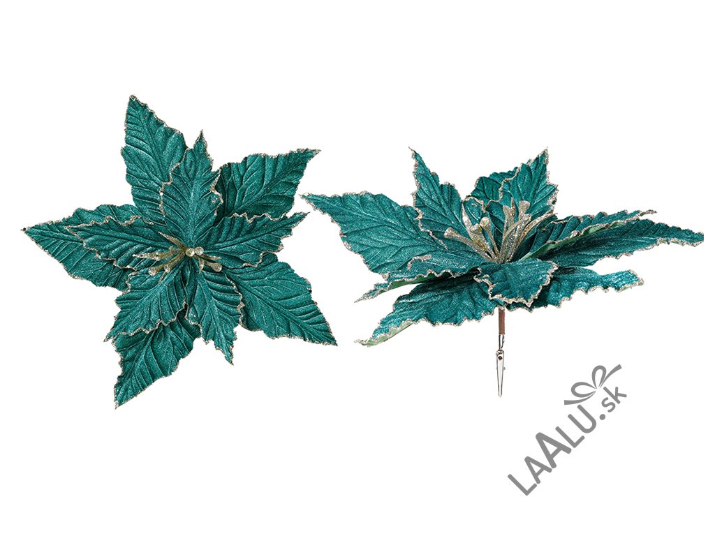 Zamatovo zelená kvetina s klipom prejasní Váš interiér a bude pútať pozornosť návštev.