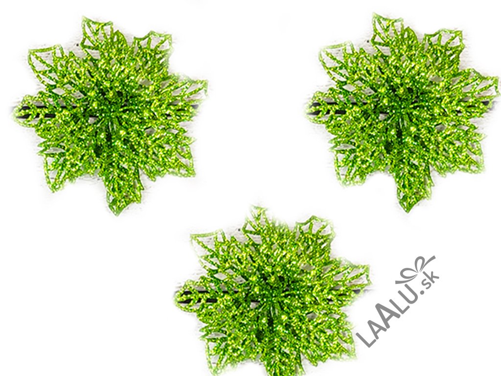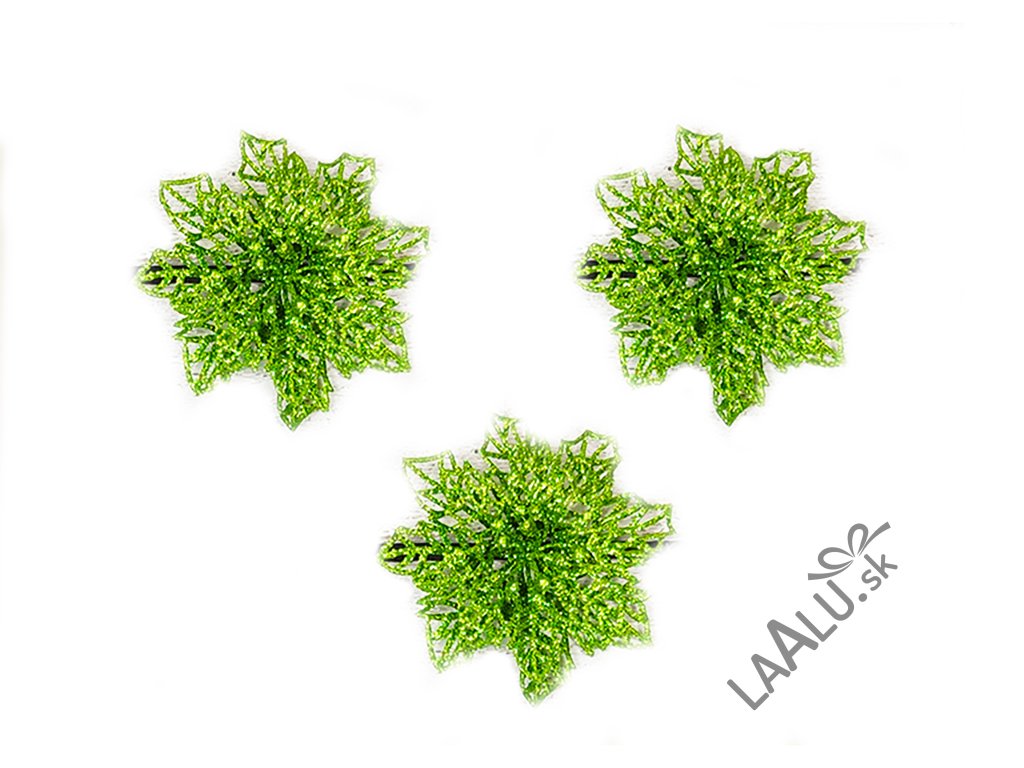 Sada 9 ks dekorácií: Kytka bez klipu zelená 10 cm