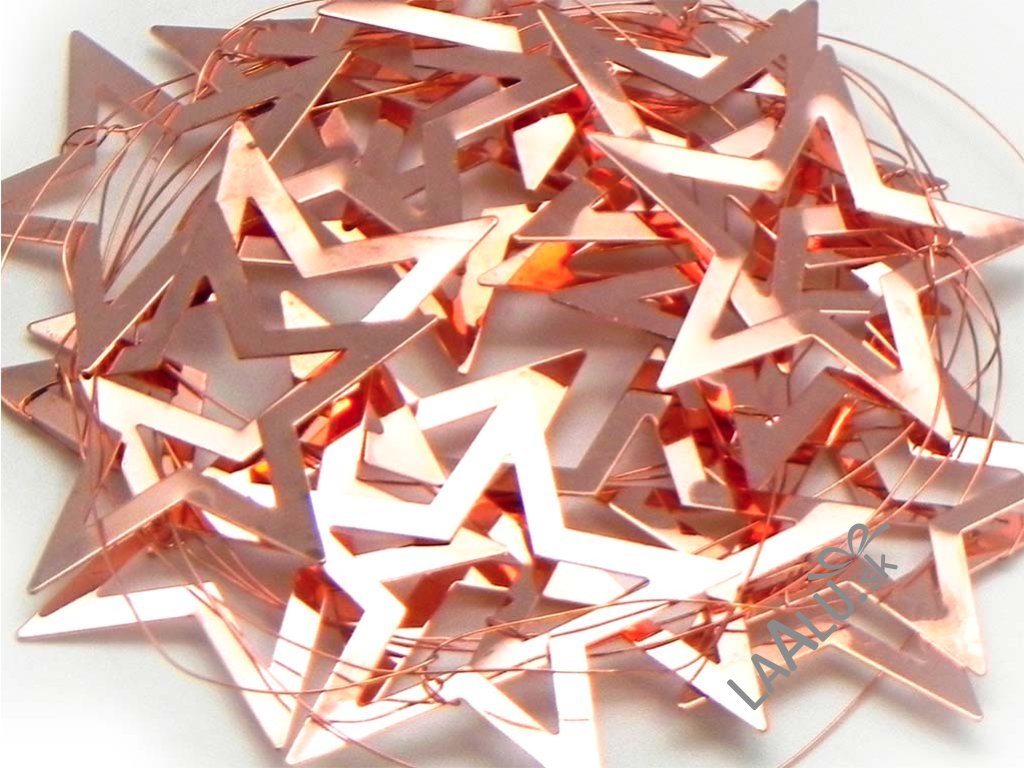 Vianočné reťaze v modernej medenej farbe s motívmi hviezdičiek.