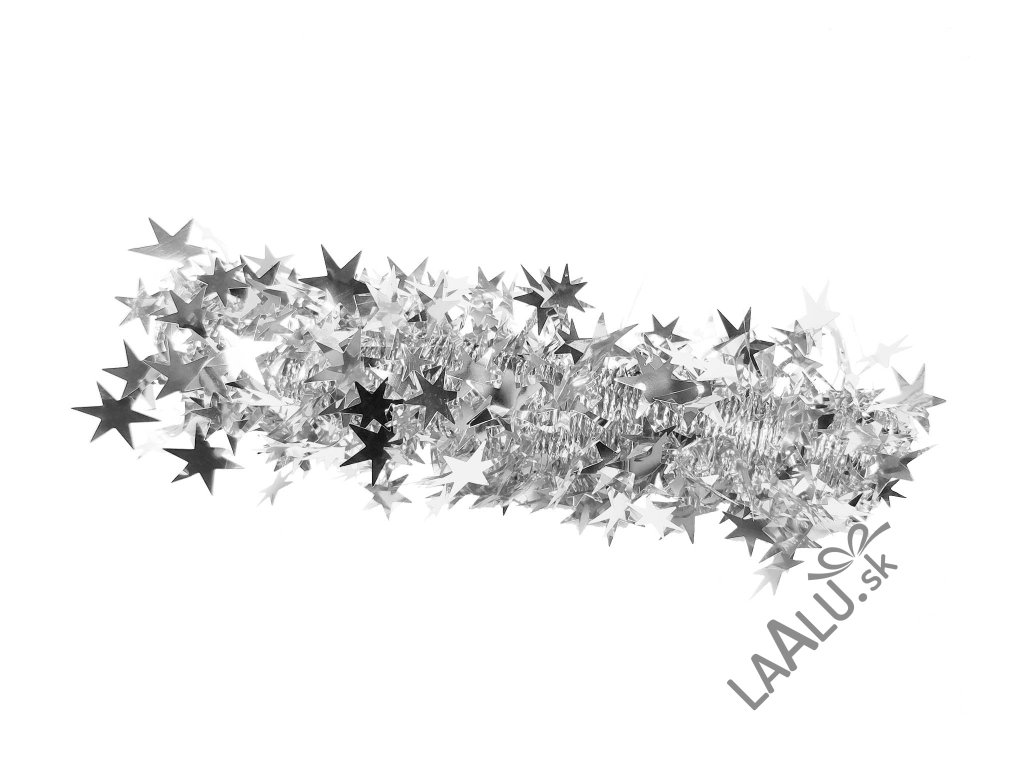 Sada 3 ks dekorácií: Reťaz špirálová s hviezdičkami strieborná 2 m