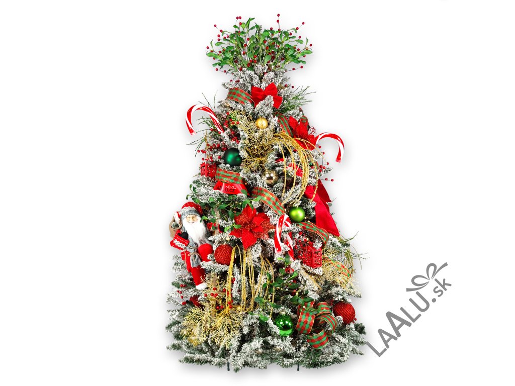 Stromčeku dominujú tradičné vianočné farby - červená, zelená a zlatá, ktoré vytvárajú nezameniteľnú atmosféru.