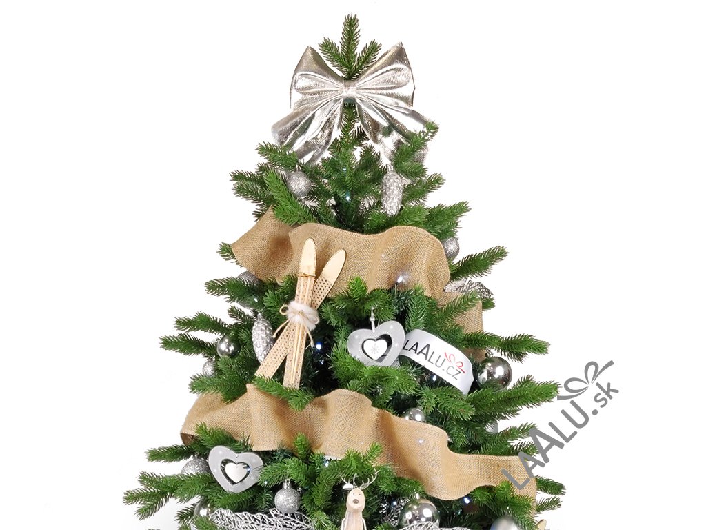 Hlavným doplnkom je prírodná juta, ktorá je prepletená celým stromčekom.