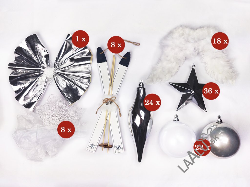 | Farba vianočných ozdôb: | biela, strieborná |