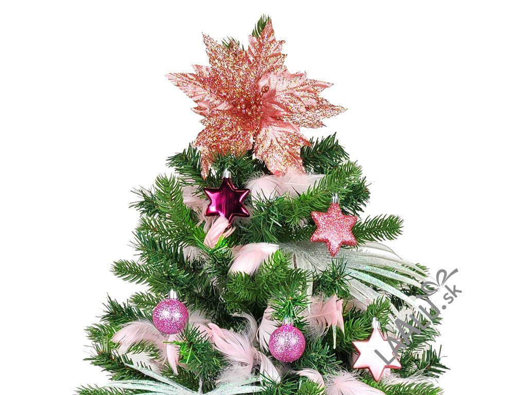Špička stromčeka je ozdobená kvetinou, ktorú stačí na špičku stromčeka len zasunúť, prípadne pripevniť pomocou drôtika.