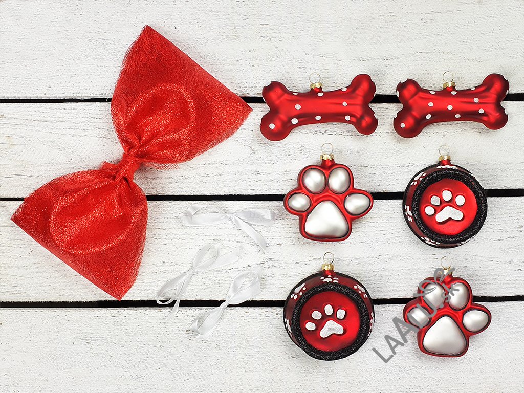 Sada ozdôb obsahuje psie kocky, misku a labky.
