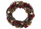 Základ venca tvoria umelé ihličie, trblietavé červené hviezdičky a drobné červené guličky.